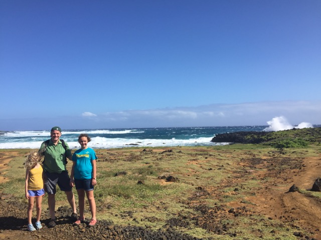 We took a 5.7 mile hike to Papakolea (green sands) beach, located near the most southern point of the 50 states. According to Lonely Planet it is only one of four green sand beaches in the world! The green sand gets its color from the mineral olivine (a mineral containing iron and magnesium), found in the enclosing cinder cone of the local volcano. We were surprised at how strong and sustained the winds were on our hike. But I can say that none of us has ever felt wind like that before!